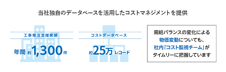 見積査定だけなく、プロジェクト全体のコストマネジメントについてもアドバイスが可能です。